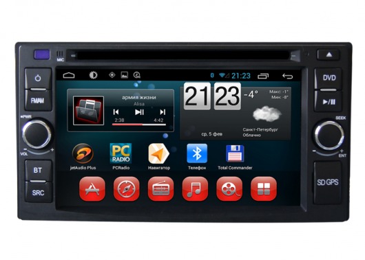 Штатное головное мультимедийное устройство позволяет прослушивать аудиофайлы различных форматов, просматривать видео (в том числе в HD-формате) и фотографии как с внутренней памяти устройства (8 Гб), так и с внешних носителей и SD карт памяти. Вы также можете слушать аналоговое или интернет-радио или смотреть видео онлайн. Или подключить цифровой ТВ-тюнер, чтобы смотреть цифровые каналы прямо на экране устройства. А еще у вас есть возможность подключить DVD-привод и смотреть фильмы и управлять DVD-меню прямо с сенсорного экрана магнитолы.