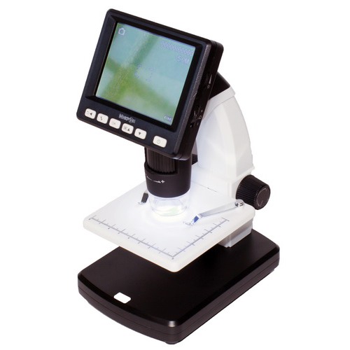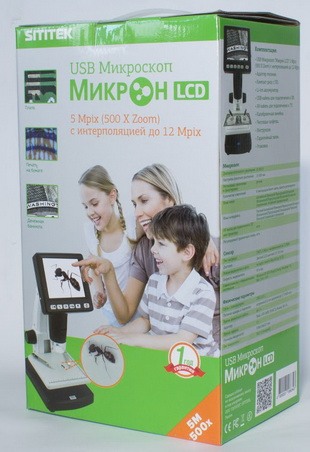 Стационарный микроскоп Микрон LCD имеет устойчивую подставку, ручной механизм увеличения и фокусировки и поддерживает запись фото и видео с сохранением на карту памяти. Изображение с камеры 5 Мп выводится на ЖК дисплей с возможностью определять размеры изучаемых предметов. Кроме того, для более удобного просмотра предусмотрен порт USB для подключения к ПК или ноутбуку.