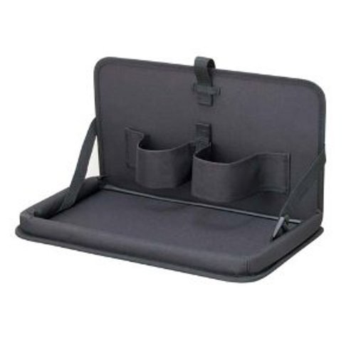 Столик JK-59 крепится на подголовник переднего сидения, для того, чтобы пассажирам на заднем сидении было удобней, например, обедать, в дальней дороге. Столик имеет специальные карманы для напитков. Причем карманы регулируются в зависимости от объема посуды. Размеры самого столика 250х350х30 мм.