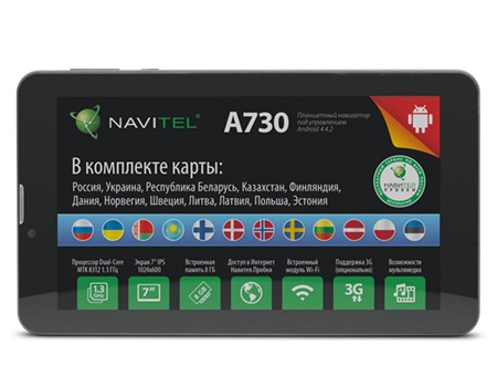 • Navitel A730 является многофункциональным девайсом, в первую очередь – это отличный навигатор, но в дополнение ко всему прочему он может выполнять функцию полноценного мобильного устройства.