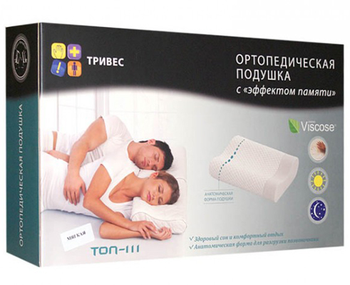 Ортопедическая подушка пол голову Тривес снимает нагрузку с плеч и шейного отдела во время сна. Это отличное средство для профилактики чрезмерной утомляемости, головных болей и стрессов. Используя Топ-111, вы обеспечиваете нормальное кровоснабжение головы и шеи. Кроме того, изделие будет полезно для лечения остеохондроза, болевых ощущений в области позвоночника, для реабилитации после травм шеи. Если же вы абсолютно здоровы, используйте ортопедическую подушку для сохранения правильной осанки, для здорового и крепкого сна.