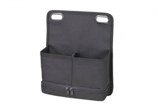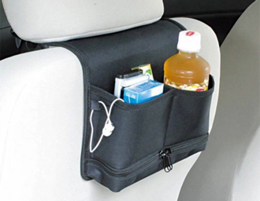 Дополнительный карман JK-58 крепится на штыри подголовника переднего сидения. Карман имеет два основных отсека, в которых пассажиры на заднем сидении могут хранить различные небольшие вещи, или продукты питания (в дальней дороге это весьма актуально).