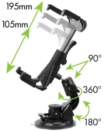 Allsop Windscreen Tablet Mount — автомобильный держатель для планшетов, который крепится на лобовое стекло и делает пользование планшетом в автомобиле максимально удобным и комфортным. Гаджет будет надежно зафиксирован, и вы сможете без проблем пользоваться навигацией или управлять музыкальными треками в дороге, а в пробке или на стоянке пользоваться любимыми приложениями или интернет-ресурсами. Allsop Windscreen Tablet Mount подойдет как для iPad, так и для других планшетов с экраном любых размеров (крепление регулируется).