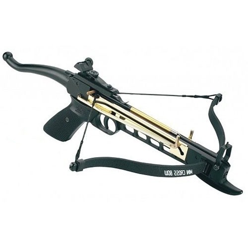 MK-80 — легкий и компактный арбалет, стрелять которым можно с вытянутой руки. Модель отличается высокой точностью стрельбы с прицельной дальностью до 20 метров. Простой затворный механизм взвода позволяет использовать арбалет даже женщинам и детям. Внутренние ключевые детали, испытывающие нагрузку, изготовлены из прочной стали. В комплекте 3 дротика из алюминия.