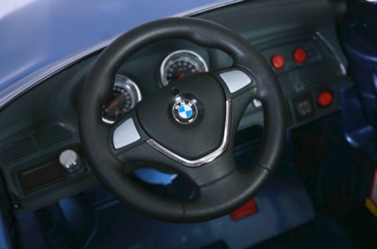 Все детали авто тщательно проработаны и качественно выполнены. А как иначе? Ведь электромобиль изготовлен по лицензии и под контролем компании BMW. Эта модель может похвастаться особенно тщательной проработкой деталей торпедо: здесь и кнопка запуска и выбора скорости, и рычаг переключения хода (вперед/назад), и мягкая неоновая подсветка. Специальное фактурное покрытие руля имитирует кожаную оплетку.