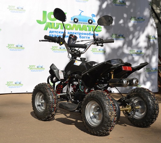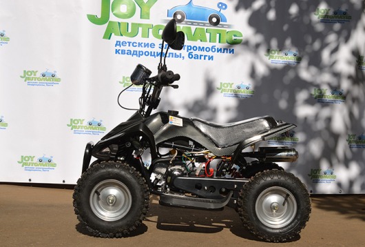 Бензиновый квадроцикл для детей и подростков Joy Automatic LMATV-049М – это полноценное транспортное средство с цепным приводом и дисковыми тормозами, которое способно развивать скорость до 40 км/ч за счет двухтактного бензинового двигателя объемом 49 см³. Модель оснащена пультом дистанционного управления, полноценным спидометром и настоящими зеркалами заднего вида.