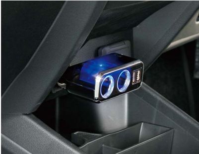 Разветвитель прикуривателя FIZZ-967 на 2 гнезда с голубой подсветкой гнезд и зарядным устройством с USB интерфейсом. Возможна зарядка iPhone, iPod, iPod nano, iPad, iPod touch, телефонов других марок, смартфонов и пр. мобильных устройств.