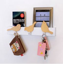 Не только полка, но ещё и многофункциональная вешалка. Птички, сидящие на полке, имеют крючки и закрепляются по всей длине изделия.