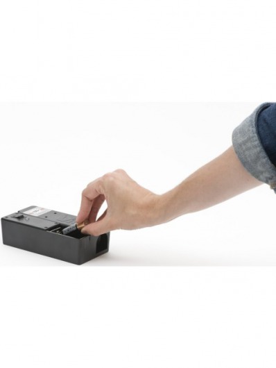Электрический уничтожитель мышей Victor работает предельно просто. Положите приманку внутрь ловушки, установите переключатель в положение ON, и все — мышеловка готова к работе. Когда мышь попадает в ловушку, назад хода нет — ее мгновенно убивает высоковольтный электрический разряд. Такая мышеловка уничтожает по одной мыши за раз, комплекта из 4-х пальчиковых батареек хватает на 100 срабатываний.