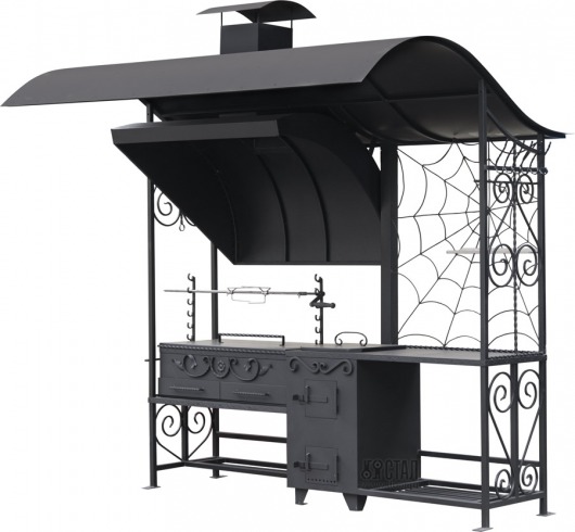 • Большой металлический навес с вытяжкой защищает мангал от осадков, так что никакой дождь не помешает вам приготовить вкуснейший шашлык для родных и друзей.