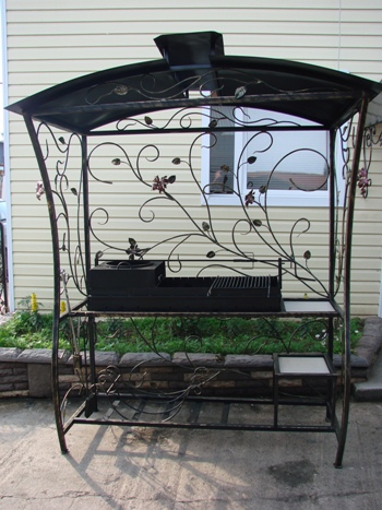 Кованый мангал с крышей МР-АЖЦ "Ажурные цветы"