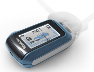 Современный четырехкнопочный основной брелок оснащен ЖКИ дисплеем, на котором отображаются иконки команд. Меню брелока полностью русифицировано. Достаточно яркая светодиодная подсветка позволит пользоваться брелоком даже в кромешной темноте. Легко обнаруживаемая основная кнопка активирует главную функцию брелока - включение режима охраны. Брелок так же позволяет контролировать заряд аккумулятора по напряжению и имеет возможность выбора мелодии оповещения. Громкость сигналов так же регулируется.