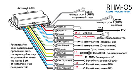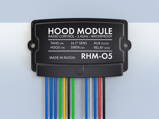 Для современных машин с цифровой шиной все агрегаты установлены очень плотно, поэтому протяжка проводов в подкапотное пространство – очень сложная и даже небезопасная задача. Ведь в процессе вы можете повредить такие системы, как рулевое управление, тормозную систему и прочее. Если же вы используете во время монтажа модуль RHM-05, вам не нужно протягивать провода под капот. Прибор обеспечивает коммутацию нужных цепей и передачу статусной информации и команд от основного блока по радиоканалу на 2,4 GHz.
