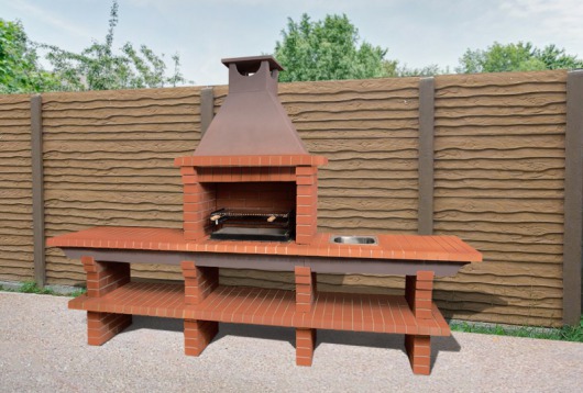 Садовая печь-барбекю из натурального кирпича Saunday 709 — превосходный выбор для тех, кто живет в загородном доме или проводит много времени на даче. Это не просто уличная печь, а полноценная садовая кухня с мангалом, большим рабочим столом и мойкой. Установите печь-барбекю в беседке, на веранде или просто под навесом и готовьте любые блюда на углях: овощи или курицу-гриль, рыбу, мясо-барбекю или традиционный шашлык.