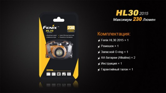 Налобный фонарь Fenix HL30 2015 светит с яркостью до 230 люмен и работает на базе двух элементов питания формата АА. Этот фонарь вполне может работать под дождем и не боится грязи, а потому он станет хорошим помощником в туристических походах, выездах на рыбалку или иного вида активного отдыха на природе.