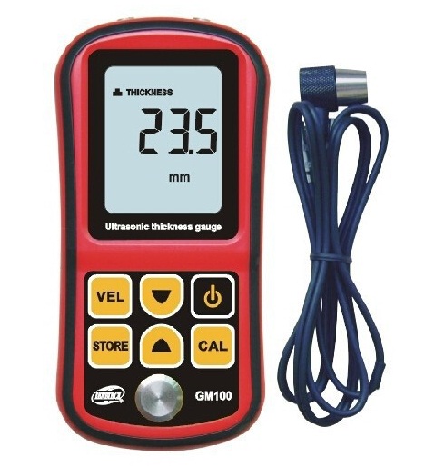 GM100 Standart - ультразвуковой измеритель толщины. Способен измерить толщину большинства используемых в автомобильной промышленности материалов в диапазоне от 1,2 до 225 миллиметров. Принцип измерения - ультразвуковой. Благодаря встроенному микропроцессору, измерения проводятся быстро и точно. Измерительный комплект устройства состоит из приемника и передатчика. Высокочастотный генератор посылает сигнал на приемник, который отражает его обратно. После попадания сигнала обратно в передатчик, микропроцессор вычисляет толщину замеряемого материала.