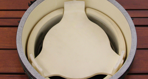 Чтобы использовать гриль Big Green Egg XL для томления или запекания блюд на непрямом огне, необходим керамический рефлектор. Он отсекает от продуктов огонь, исходящий от углей, и превращает гриль в печь. Используйте рефлектор совместно с гриль-решетками.