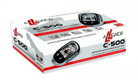 Автосигнализация Alligator C-500 - это полноценный охранный комплекс класса «Премиум» с двусторонней связью, с функциями передачи дистанционных команд  и оповещений о состоянии автомобиля при помощи 5-ти кнопочного брелока с ЖК-дисплеем. Вся информация и сообщения отображаются на русском языке в виде бегущей строки на текстовом дисплее брелока. Брелок системы имеет встроенный литий-ионный аккумулятор. Его можно подзаряжать от любого зарядного устройства со стандартным разъемом miniUSB (ЗУ уже идет в комплекте). Корпус брелока имеет металлические вставки.