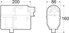 Это компактная модель с размерами 200 х 86 х 160 мм.
