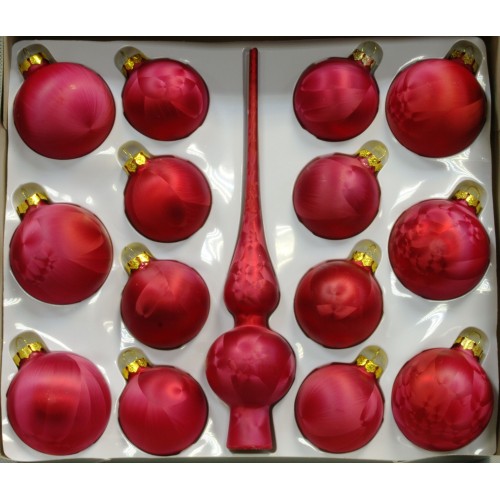 Набор стеклянных елочных шаров с верхушкой PeneriGifts (красные, 15 шт.)