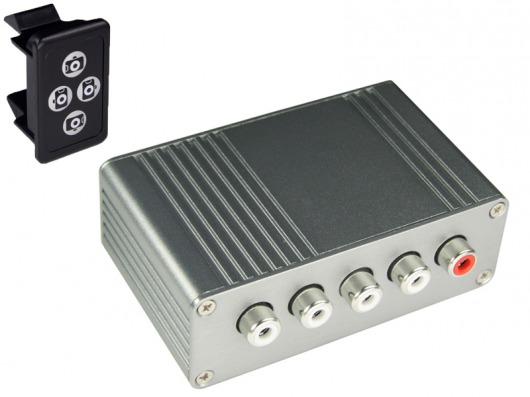 Кнопка - переключатель, входящая в комплект, устанавливается в штатное место - заглушку и делает установку на автомобиль совершенно незаметной. Блок переключения запоминает последнюю выбранную камеру, а при включении задней передачи переключается в режим задней камеры. После перехода из режима задней передачи, блок автоматически включает переднюю камеру.
