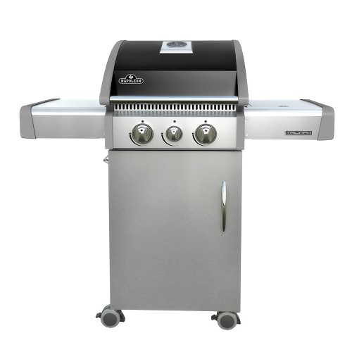 В комплектацию входит: основной корпус гриля с крышкой из нержавейки, три основных горелок и одна вспомогательная, чугунная основная решетка и стальная решетка вспомогательная, фиксируемые колеса, встроенный термометр, складные боковые столы, лоток для жира.