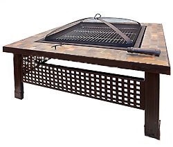 Благодаря мангалу данный очаг станет не только красивым украшением сада, но и практичным приспособлением для готовки блюд на свежем воздухе. Основная конструкция очага выполнена из стали, столешница изготовлена из натурально камня с мозаичным рисунком, основание очага украшено орнаментом художественной ковки. Очаг выпускается в двух цветовых вариантах: синяя и коричневая. При заказе укажите в поле над ценой необходимый вариант расцветки.