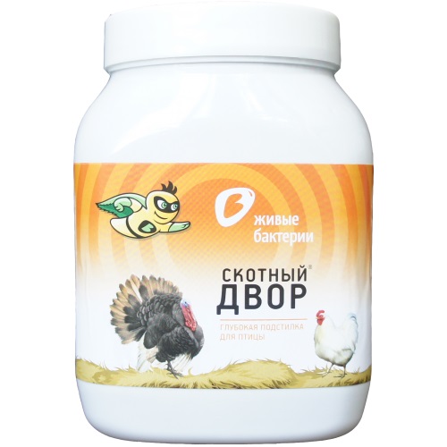 Комплексный препарат «Скотный двор» экологически чистый для животных и людей. Он безопасен, даже если птица будет его склевывать. Вначале можно настелить небольшой слой. Далее постепенно поднимать его до нужной высоты, на которой начнет выделяться тепло (20 - 30 см). Тепло способствует повышению эффективности работы препарата в целом. Отработанный уплотненный слой через два года можно сменить, а старый использовать как удобрение.