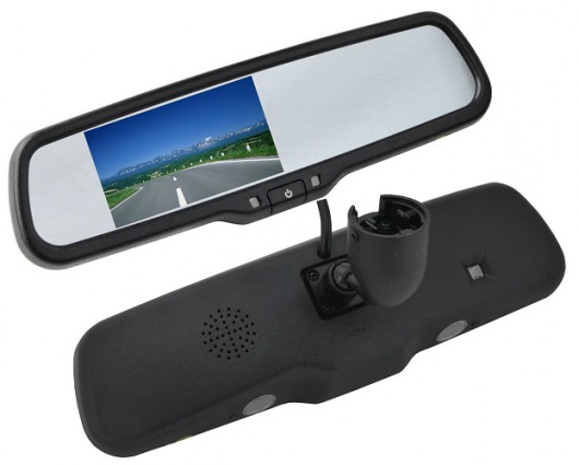 Салонное зеркало с монитором устанавливается вместо штатного зеркала заднего вида. Поэтому в выключенном состоянии прибор абсолютно не привлекает внимания воров и мошенников. Его установка займет всего несколько минут. В комплекте имеется специальный держатель, это крепление предназначено для установки на штатную площадку на лобовое стекло. Имеются все нужные провода для подключения к питанию.