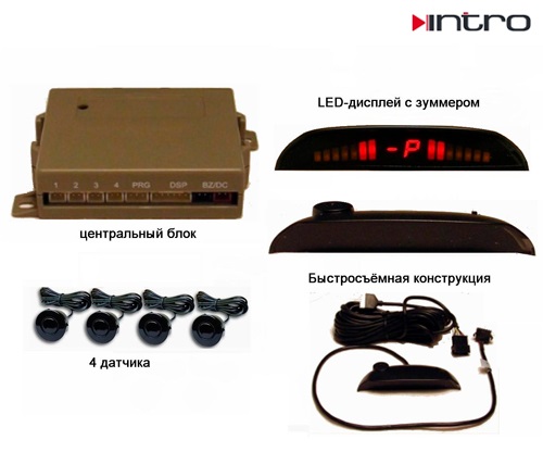 Цветное фронтальное табло индикатора (со встроенным звуковым зуммером) показывает расстояние до препятствия. Звуковой сигнал предупреждает о приближении к опасности, а динамик встроен в табло индикатора. Таким образом, при появлении опасного объекта вы увидите на дисплее индикацию расстояния до него и услышите звуковой сигнал. Звуковые сигналы различаются между собой в зависимости от удаленности препятствия.