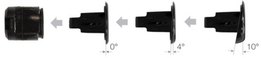 • Системы с датчиками A комплектуются проставочными кольцами, которые компенсируют угол наклона бампера (углы наклона 0°, 4°, 10°).