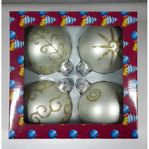 В набор PeneriGifts входят 4 стеклянных елочных шара диаметром 8 см. Серебристые матовые шарики с рисунками смотрятся добротно, нарядно и празднично. Двух-трех таких наборов будет вполне достаточно, чтобы целиком нарядить комнатную елку. А стоит ли говорить, что набор елочных шариков будет отличным новогодним подарком кому-нибудь из ваших родных и близких. Дети особенно будут рады таким шарикам на елку с веселыми новогодними рисунками.