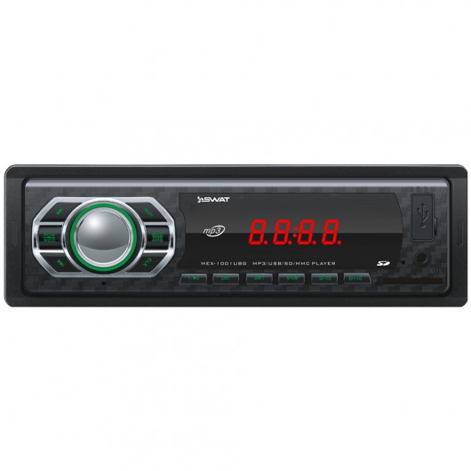 Автомобильная магнитола 1din Swat MEX-1001UBG – недорогое, но функциональное утройство. У MEX-1001UBG есть широкий набор возможностей, которые позволяют выжать из устройства по максимуму. Ресивер способен выдавать звук на 2 колонки по 35 ватт. Есть возможность сохранения до 18 радиостанций на цифровом радио-тюнере. Кроме того, реализована возможность прослушивания аудиозаписей через карту памяти.