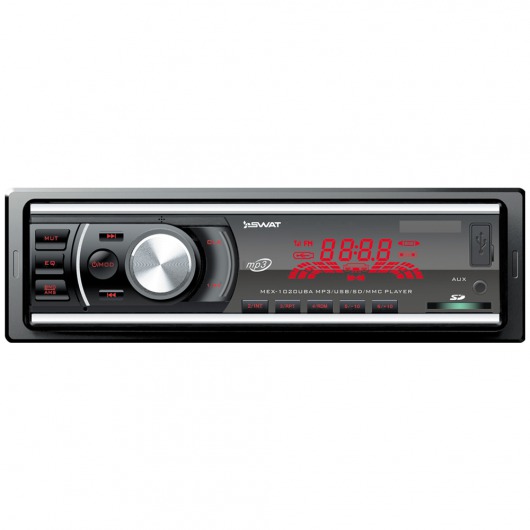 Автомобильная магнитола 1din Swat MEX-1020UBA – недорогое, но функциональное утройство. У MEX-1020UBA есть широкий набор мультимедийных технологий, которые позволяют выжать из устройства по максимуму. Ресивер способен выдавать звук на 4 колонки по 35 ватт. Есть возможность сохранения до 18 радиостанций на цифровом радио-тюнере. Кроме того, реализована возможность прослушивания аудиозаписей через карту памяти.