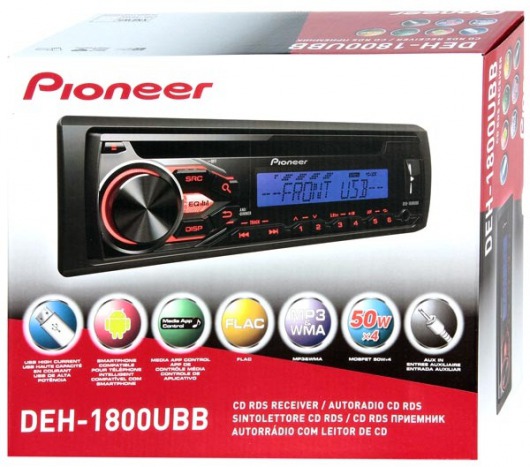 Автомобильная магнитола 1din Pioneer DEH-1800UBB – очень функциональное утройство. У автомагнитолы есть широкий набор мультимедийных технологий, которые позволяют выжать из устройства по максимуму. Ресивер способен выдавать звук на 4 колонки по 50 ватт. Есть возможность сохранения до 18 радиостанций на цифровом радио-тюнере. Кроме того, реализована возможность прослушивания аудиозаписей через карту памяти или диски.