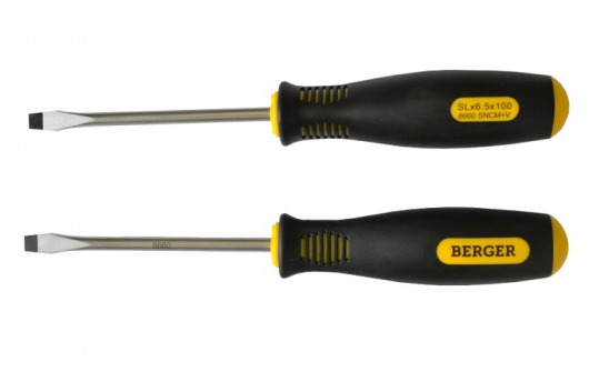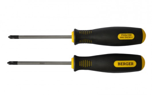 BERGER BG-08SS — это универсальный набор из 8-ти отверток с крестовыми наконечниками РН (Phillips) и прямыми наконечниками SLOT (шлиц). Отвертки изготовлены их прочной никель-хром-молибденовой стали марки AISI 8660, благодаря чему инструменты выдерживают продолжительные интенсивные нагрузки. А удобные резиновые рукоятки не скользят и абсолютно не деформируются при использовании.