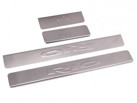 Внутренняя накладка на порог Kia Rio — это аксессуар автомобильного тюнинга, который защищает внутренний порог от механических повреждений при посадке и высадке из машины. Декоративные накладки с логотипом на внутренние пороги предназначены для автомобилей Киа Рио от 2013 г.в.