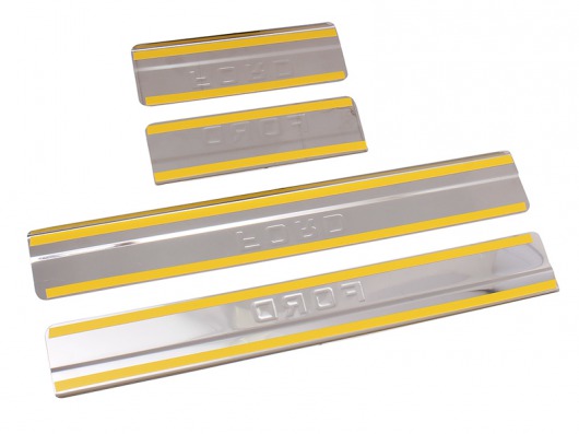 Накладки на металлические пороги дверей Форд Фокус 3 с логотипом авто не только обеспечивают защиту верхней и боковой поверхности внутреннего порога, но и отлично вписываются в интерьер автомобиля, подчеркивая его стиль и индивидуальность. C монтажом проблем не возникнет: установка накладок на внутренний порог для Ford Focus 3 производится на штатные места с помощью скотча 3M.