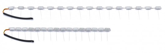 Гибкие дневные ходовые огни (DRL) Optima предназначена для установки в фары автомобиля. Может работать в 2-х режимах: для подсветки и индикации поворота, а также в режиме дневных ходовых огней (DRL).  При повороте лента светит желтым светом, при движении прямо — белым. Диодная лента имеет гибкий корпус, поэтому может быть согнута в любом направлении.