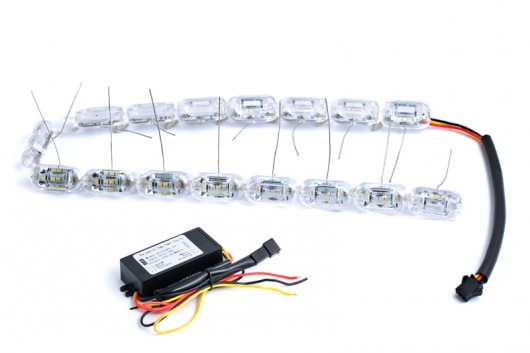 Гибкие дневные ходовые огни (DRL) Optima предназначена для установки в фары автомобиля. Может работать в 2-х режимах: для подсветки и индикации поворота, а также в режиме дневных ходовых огней (DRL).  При повороте лента светит желтым светом, при движении прямо — белым. Диодная лента имеет гибкий корпус, поэтому может быть согнута в любом направлении.