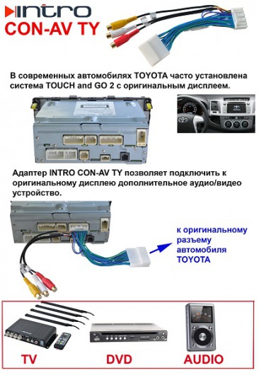 Предназначен для подключения дополнительных аудио-видео устройств к штатному дисплею автомобиля TOYOTA c системой Touch and Go 2