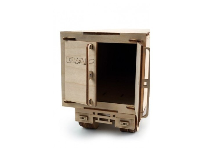 Вы очень интересно проведете время, собирая 3D конструктор, а после — получите полноценную качественную игрушку. Грузовик из дерева получается солидный и большой. К тому же сделан он очень реалистично и отлично ездит по любой поверхности. Кроме того, прицеп обладает такими креплениями, с помощью которых он поворачивается на поворотах, а дверцы кабины и прицепа легко открываются.