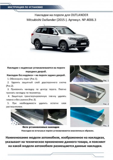 Вопросы и отзывы про Накладки на пороги для Mitsubishi Outlander от 15 г.в. (Rival)