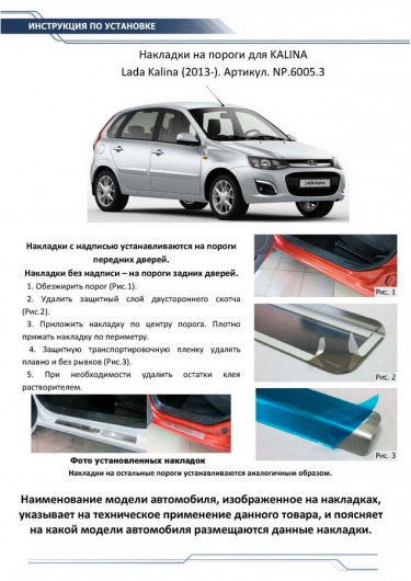 Вопросы и отзывы про Накладки на пороги для Lada Kalina от 13 г.в. (Rival)