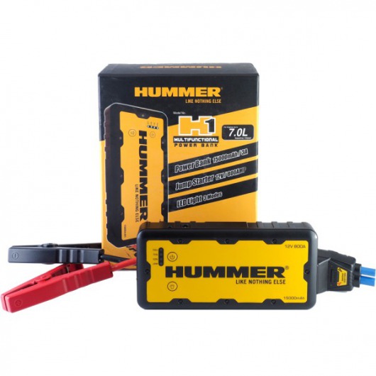Современное многофункциональное портативное пусковое устройство HUMMER H1 -благодаря пусковому току 800 А, способно запускать как 7-ми литровые бензиновые, так и 5-ти литровые дизельные двигатели. Зажимные клеммы устройства обладают интеллектуальной защитой от обратной полярности, сверхтока, обрыва цепи и перегрева.