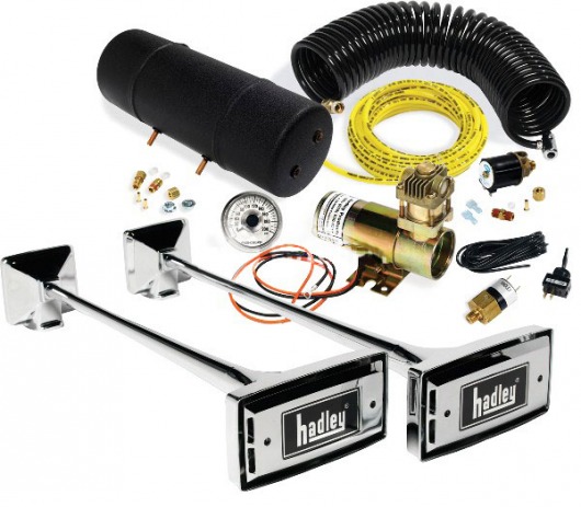 Звуковой сигнал Hadley KIT 984 элитная воздушно-звуковая система, звуковое давление которой составляет 146 db. Hadley KIT — превосходная замена традиционному клаксону. Звук от такого комплекта слышен за 2 км! Даже владелец мощной фуры позавидует таким показателям. А у едущего впереди вряд ли возникнет желание не пропустить Вас... Модель не относится к категории спецсигналов, поэтому никаких проблем с дорожной инспекцией у Вас не будет.