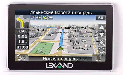 Основное преимущество Lexand STR-5350 HD перед младшими моделями - это его экран. Он имеет диагональ 5 дюймов, а отображаемая на нем картинка весьма четкая; аббревиатура HD (High Definition) в названии модели говорит о высоком разрешении матрицы 800 на 480 пикселей. Дисплей яркий, он выполнен по технологии TFT-LCD и обеспечивает контрастное изображение даже при дневном свете. Помогает экрану в этом антибликовое покрытие, которое действует очень эффективно.
