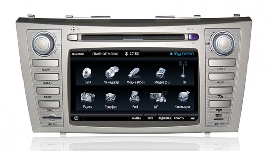 Штатная магнитола MyDean 7134 для автомобилей Toyota Camry V40 ( —2011) — это целый бортовой компьютер с огромными возможностями. Головное устройство полностью повторяет дизайн штатных магнитол и подключается по штатным разъемам. Т.е. внешне она ничем не отличается от предустановленной аудиосистемы, но функционально превосходит ее в разы.