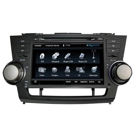 Штатная магнитола MyDean 7144 для автомобилей Toyota Highlander — это целый бортовой компьютер с огромными возможностями. Головное устройство полностью повторяет дизайн штатных магнитол и подключается по штатным разъемам. Т.е. внешне она ничем не отличается от предустановленной аудиосистемы, но функционально превосходит ее в разы.