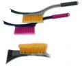 Теплая и непромокаемая ручка на дюрали. Основная щетина - мягкая и распушенная. Вспомогательная - жесткая, для плотного снега. Скребок из 2 лезвий: для больших поверхностей стекла и для углов зеркал.